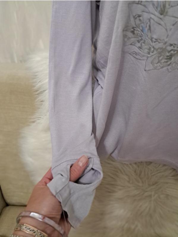 Рукава: длинные, свободные, с драпировкой и вырезом для пальца.