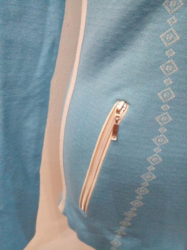 Без следов ношения и нюансов, как новая, на оф сайте такие стоят от 150 до 190 евро, специальные новейшие технологии спортивной одежды. Плотно облегает тело, возможно, лучше на М, смотрите по меркам.