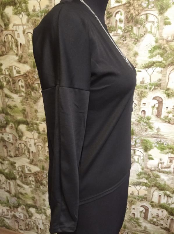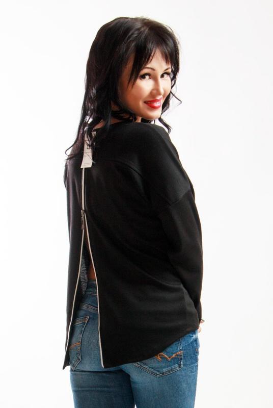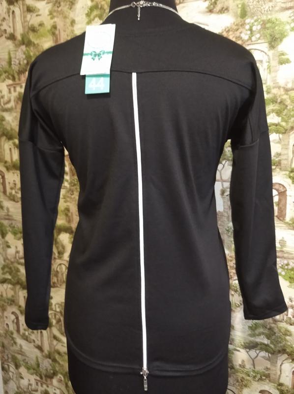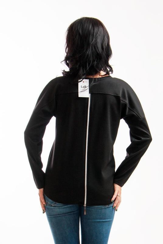Сзади по спине вставлена молния-змейка, придавая блузе, выполненной в спортивном стиле, женственности.