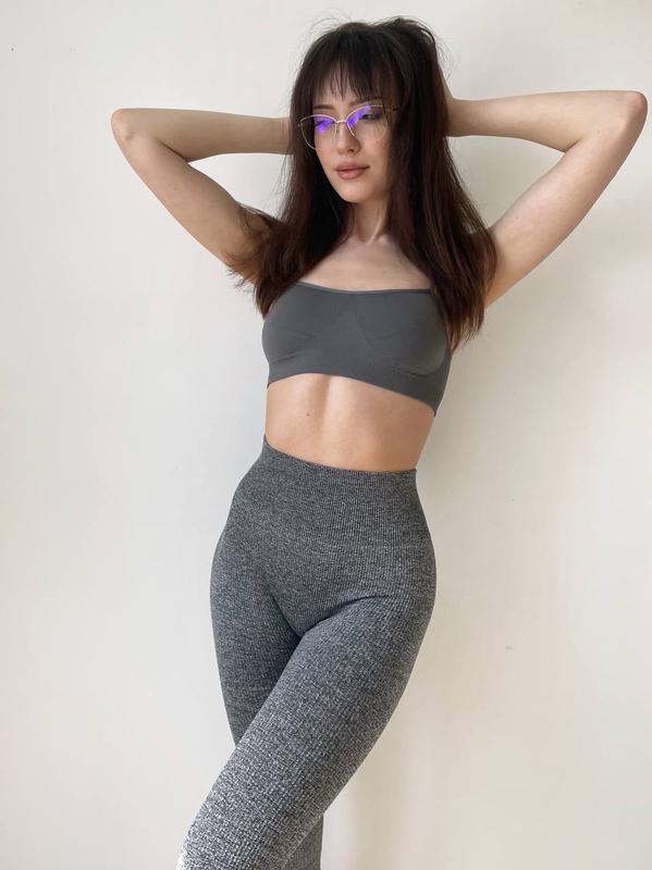 Бесшовные леггинсы пуш-ап в рубчик для занятий йогой и спортом в зале, фитнеса, шейпинга и т.д., поскольку не имеют ни одного шва.