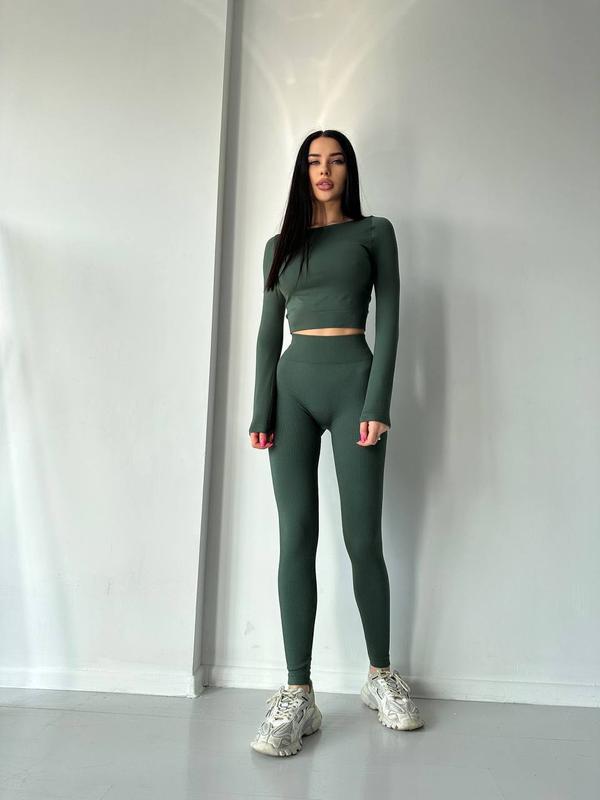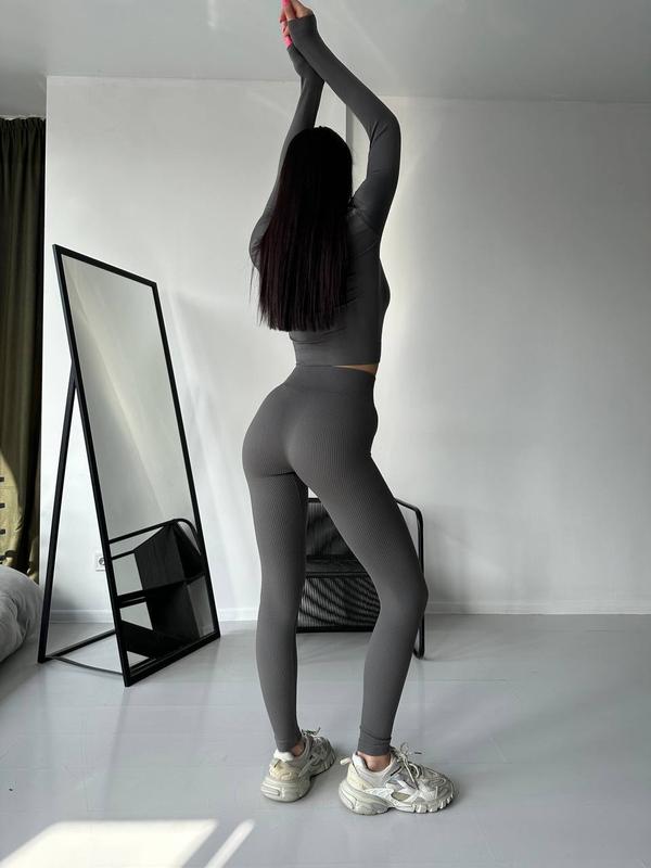 Бесшовные леггинсы в рубчик для занятий йогой и спортом в зале, фитнеса, шейпинга и т.д., поскольку не имеют ни одного шва.