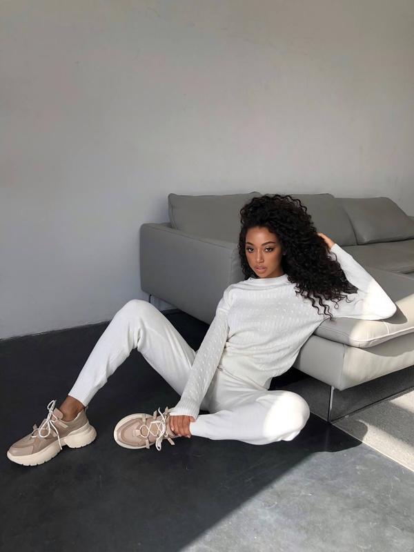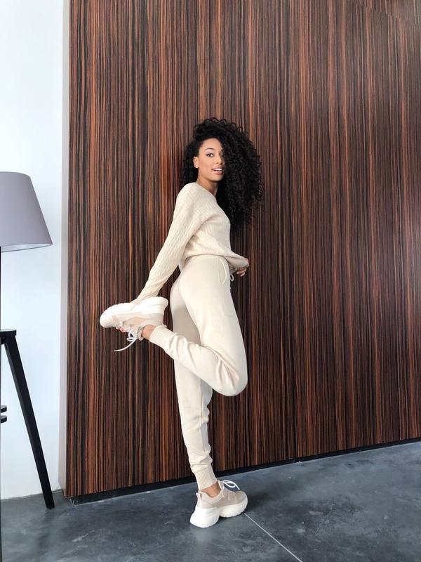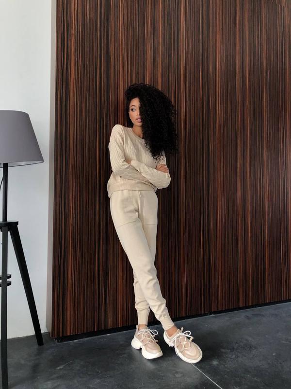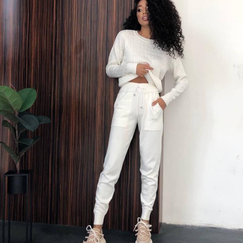 Розмір XS-S і M Довжина рукава 52 см, довжина светра 56 см, довжина штанів 103 смпо внутрішньому шву 80 смСклад 50% віскоза та 50% бавовнаЯкість люкс