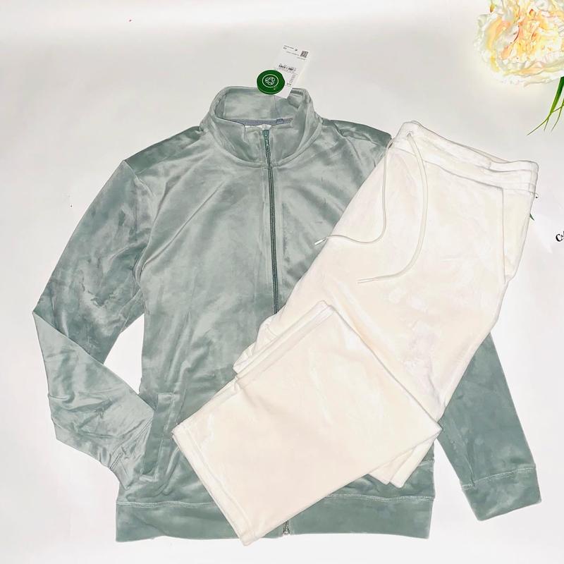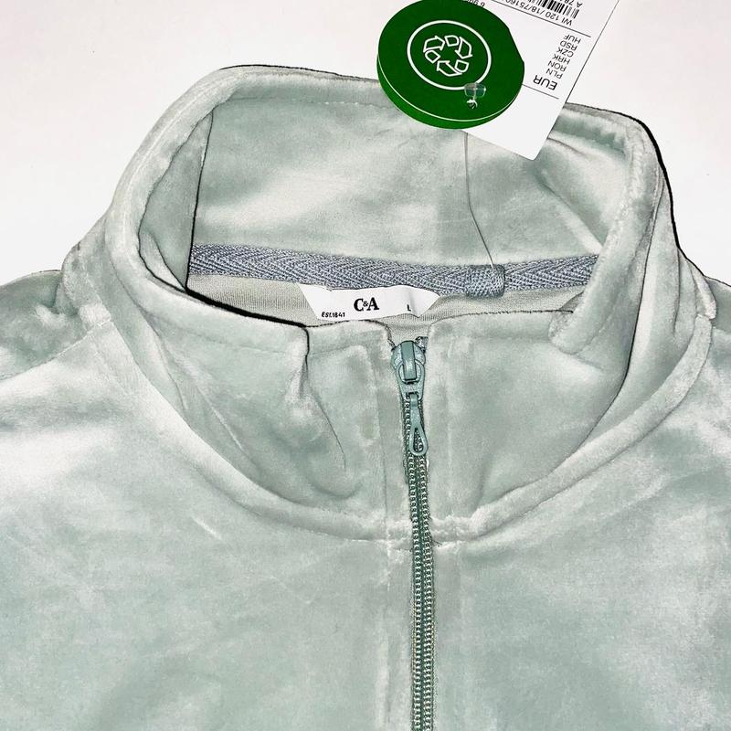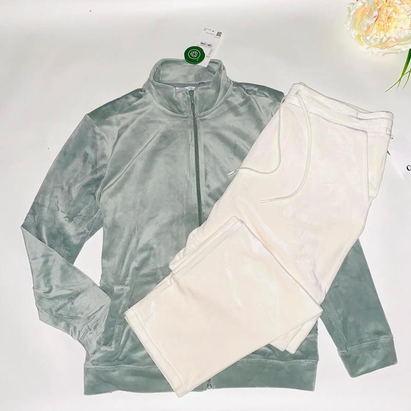 Спортивный велюровый женский костюм.Кофта-на замочке, с карманами, на рукавах - манжеты, цвет-изумрудный.Брюки- прямого кроя, молочного цвета, с карманами, пояс регулируется.Размер: 📌 L
