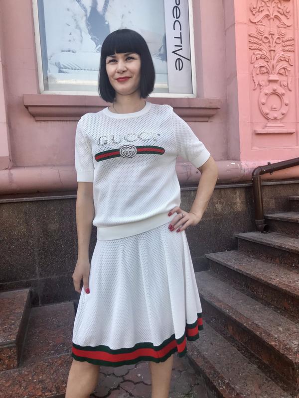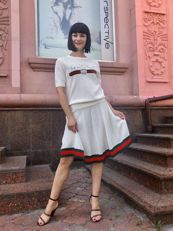Костюм молодежный из ажурного трикотажа , красивого белого цвета , юбочка