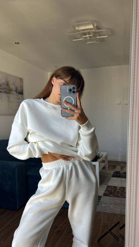 Сет на флисе свободного фасона со свитшотом и джогерами