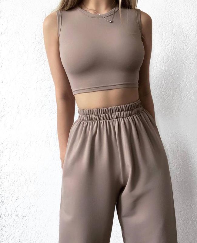🌿 Must have and must need для каждой модницы: джоггеры свободного кроя с рабочими карманами и укороченный топ.