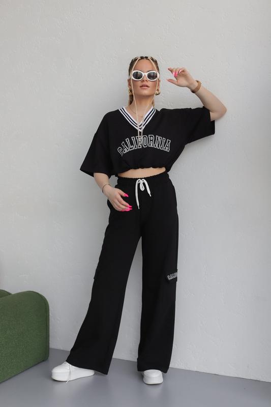 Костюм с брюками карго, с футболкой, внизу есть резинка, чтобы ее затянуть. Тканина двухнитка. Размеры S (42-44) M(44-46)