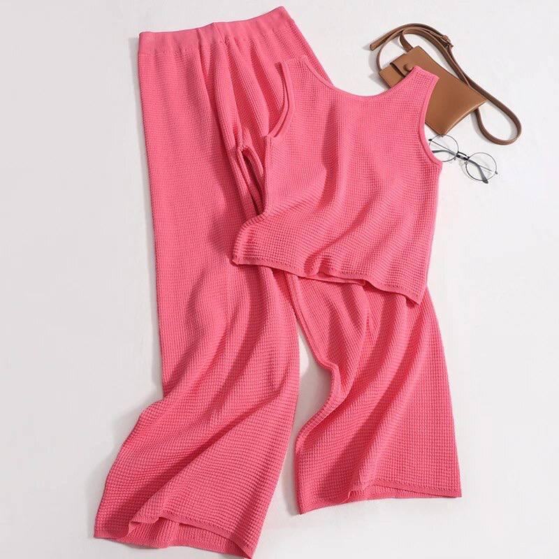 Спортивный костюм Топ +штани Модель es 5443 Размеры 42-44,46-48 Тканина Кукурудза Цвет молоко и розовый