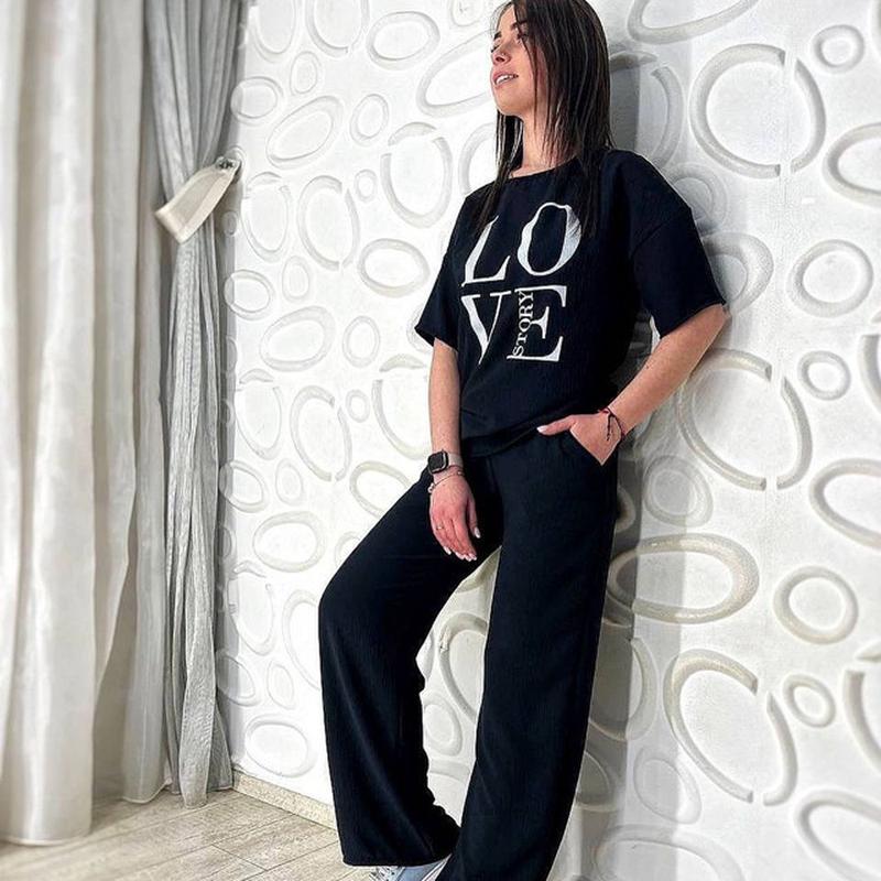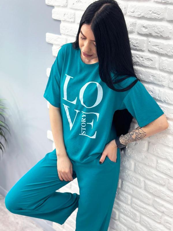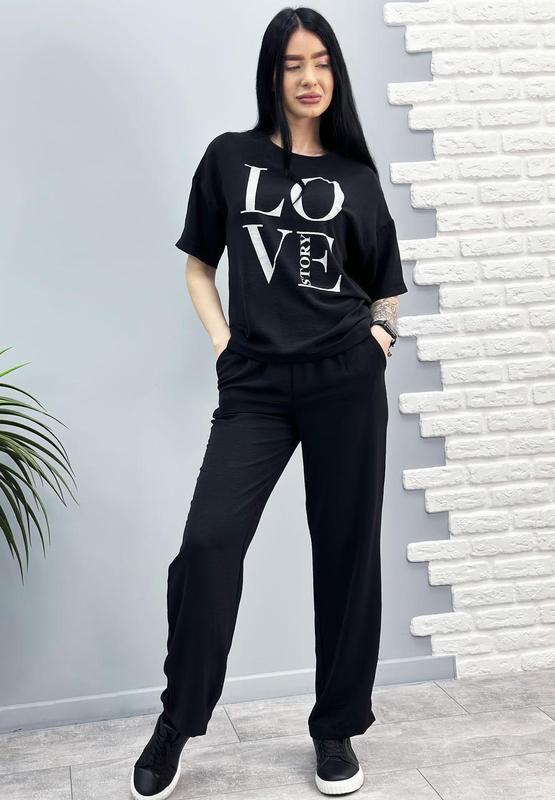 - - верх - футболка свободного кроя, низ - широкие свободные брюки;