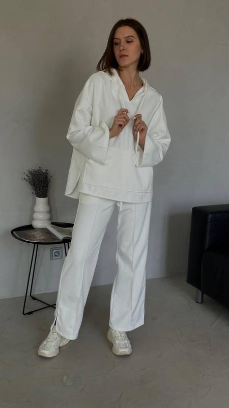 Стильний жіночий брючний костюм білого кольору, повсякденний жіночий костюм-двійка з кашем...