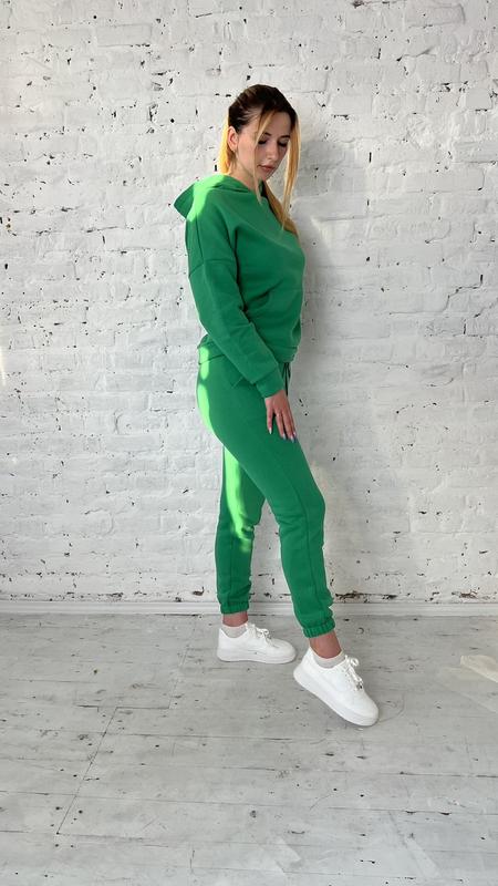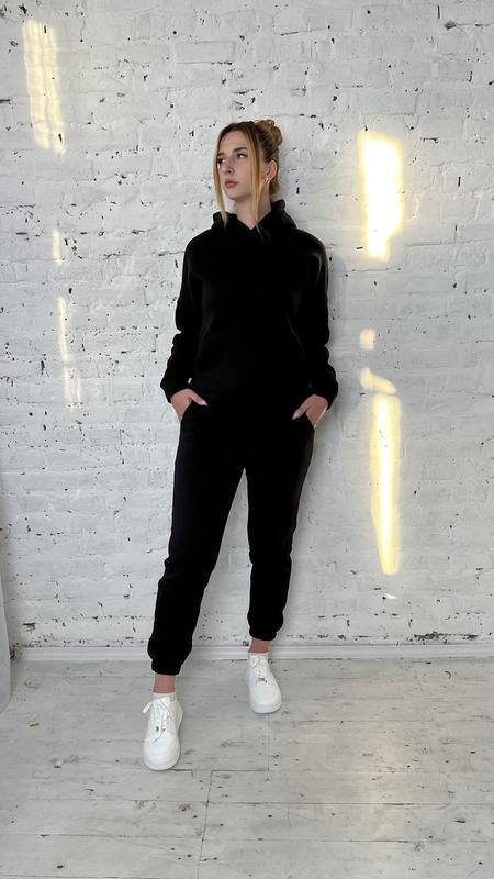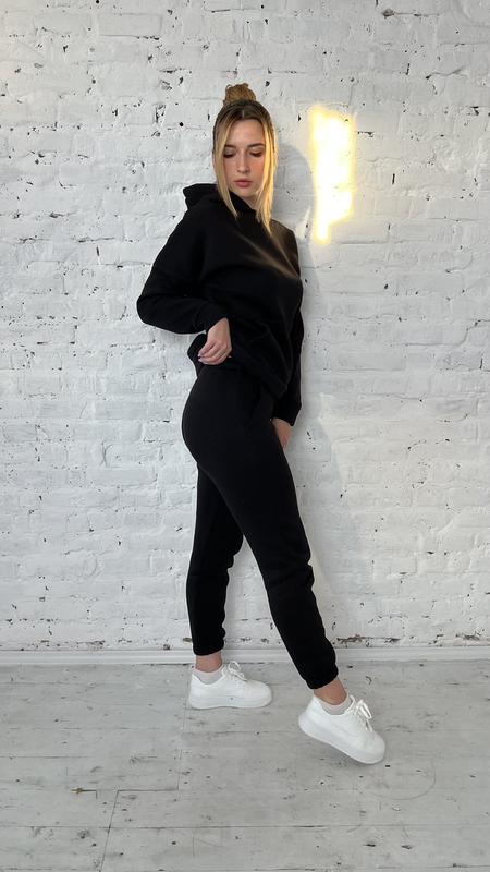 Капюшон с подкладкой, низ брюк джоггеры на резинке, пояс на поясной и шнурок.