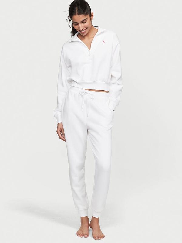 Cotton Fleece Half zip Mock Neck & High-Rise Jogger Pants