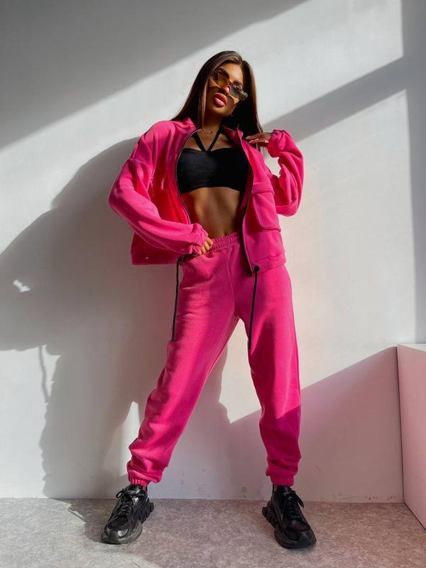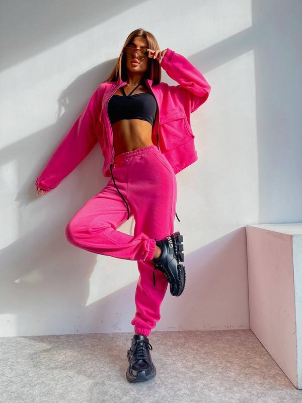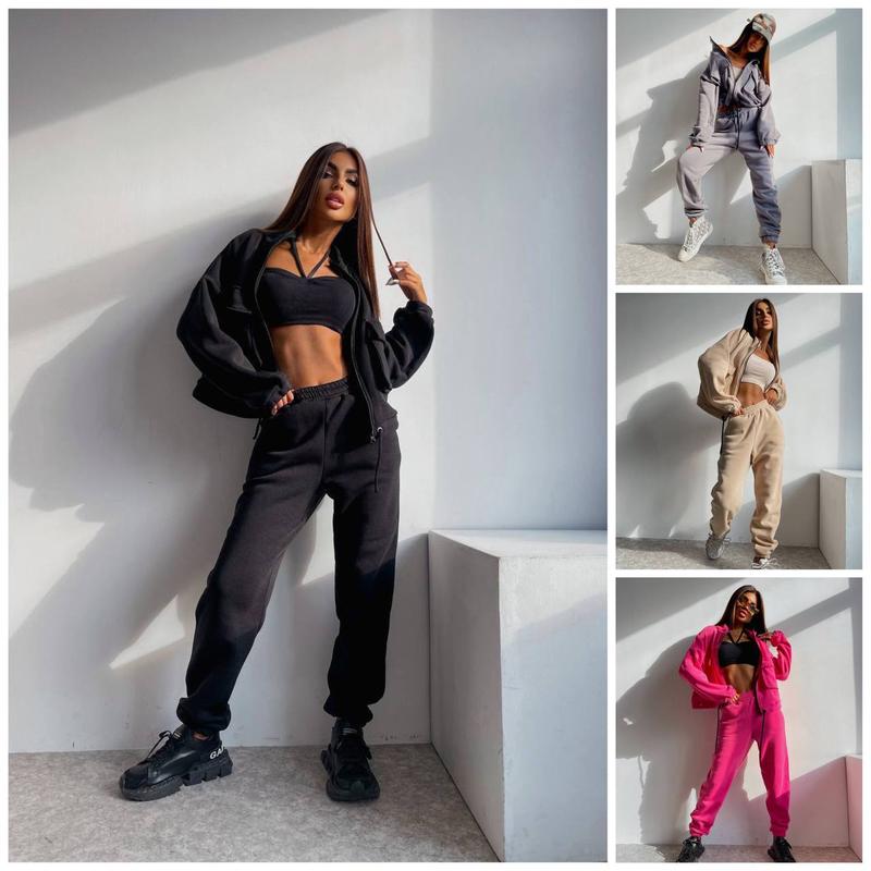 Костюм женский спортивный теплый из трехнити на флисе черный, розовый, графит, бежевый.