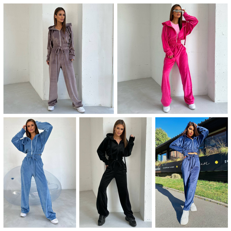 Спортивный женский костюм велюр 42-48 черный, голубой, розовый, мокко, сине-фиолетовый
