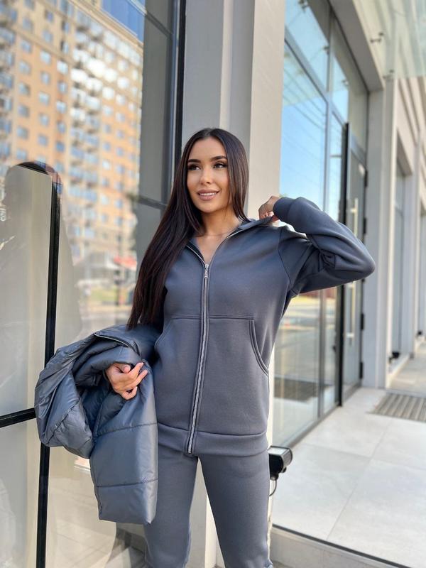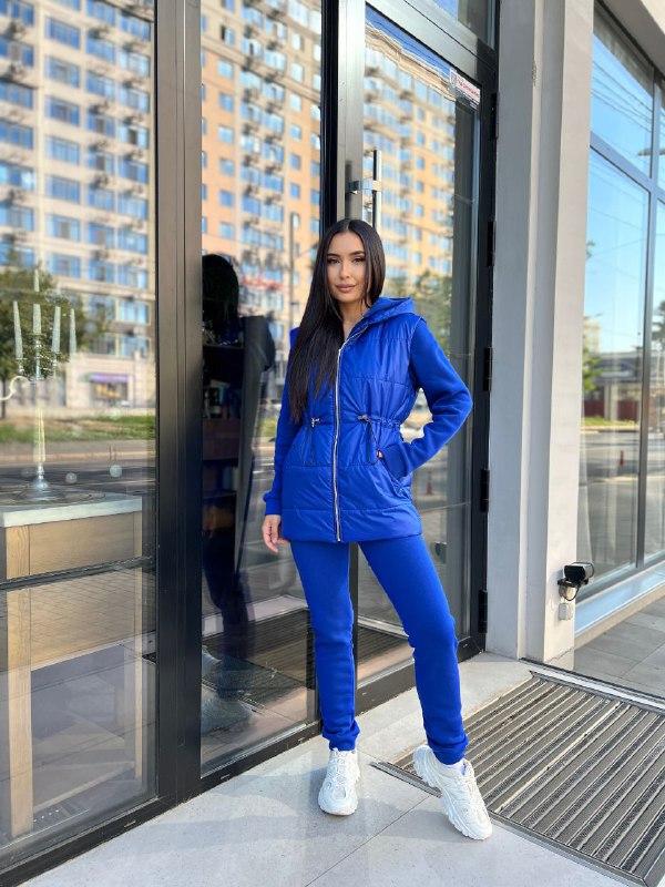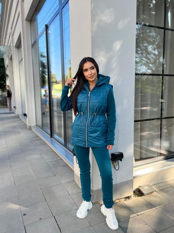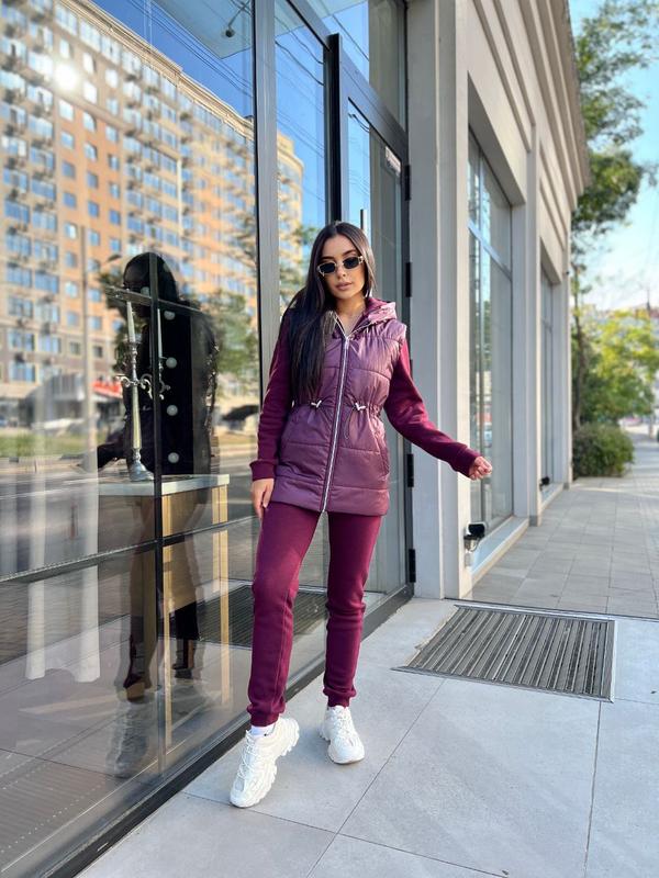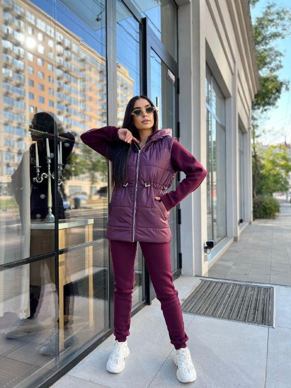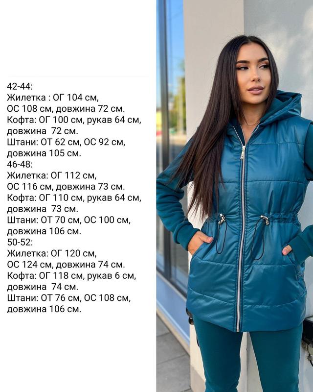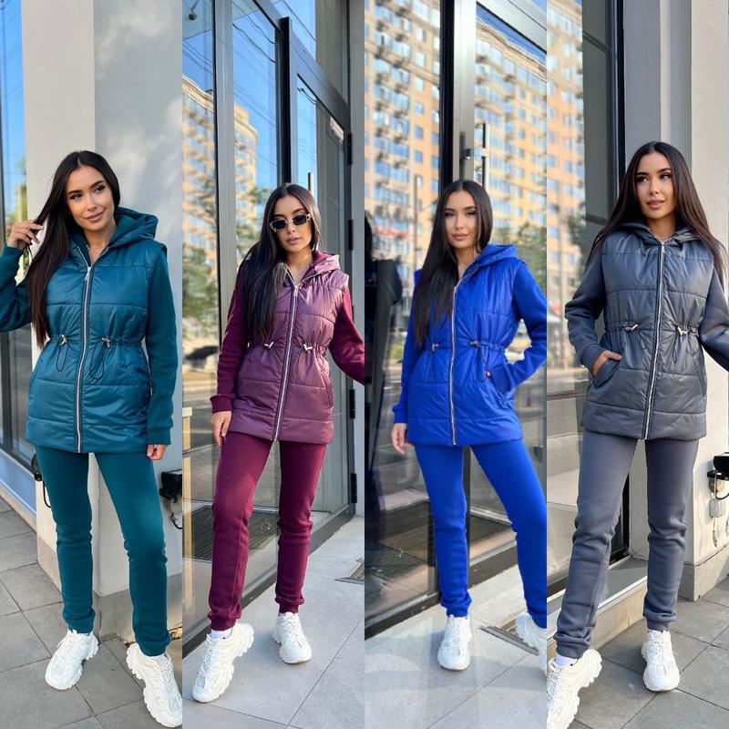 Костюм женский тройка👑 ✔Размер - 42-44, 46-48, 50-52. ✔Ткань - тренирит на флисе, жилетка синтипон 150✔Цвета: графит, бордо, морская волна, синий.Мод.1373\2482