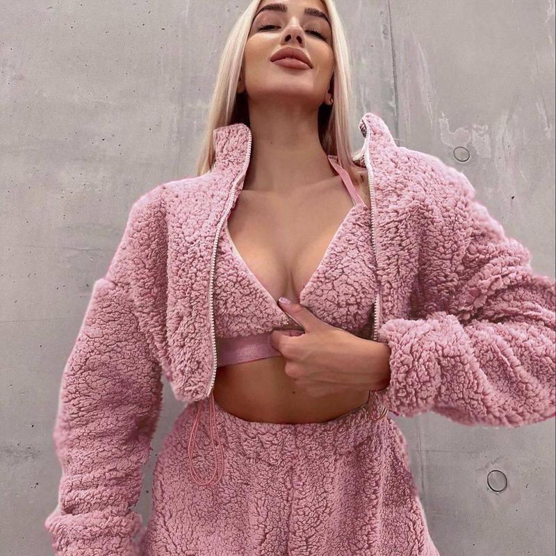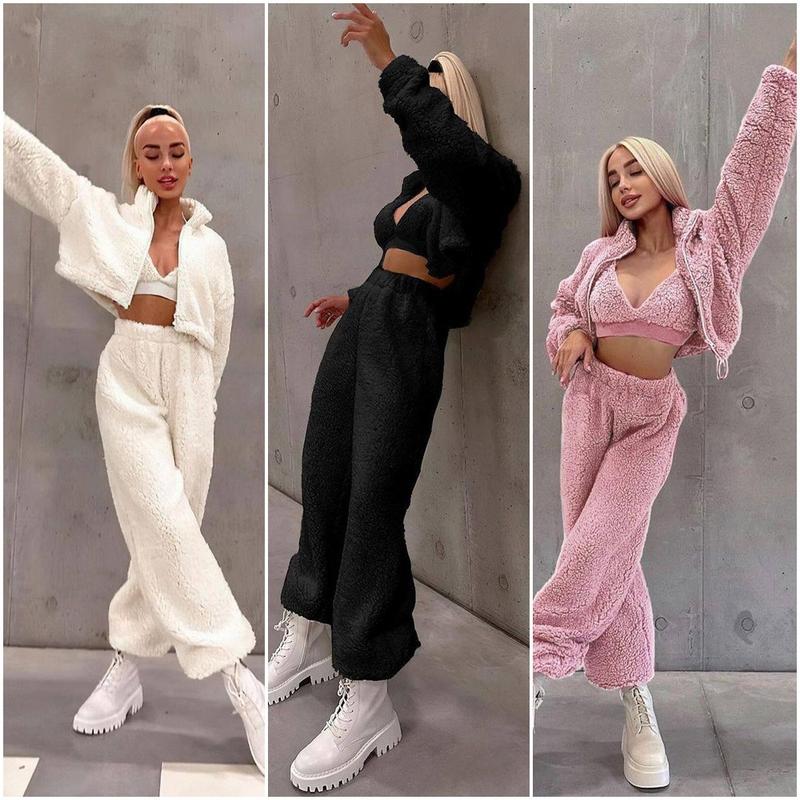 КОСТЮМ 3-ка Размер: 42-44, 46-48 Цветы: барби, молоко, черный Ткань: мех ТЕДДИ + двунитка