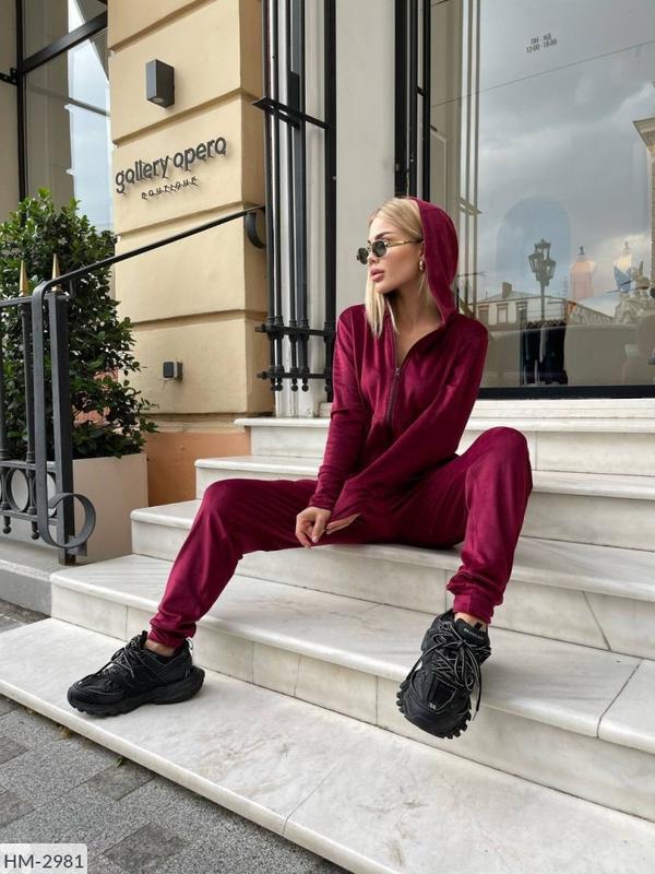 Прогулочный костюм 💥арт: 7001Цена: 740 грн.🔥Размеры: 42-44, 46-48,48-50.Прогулочные костюмыОписание: двойка, кофта с капюшоном, на молнии в цвет кофтыТкань: плотный Велюр спорт
