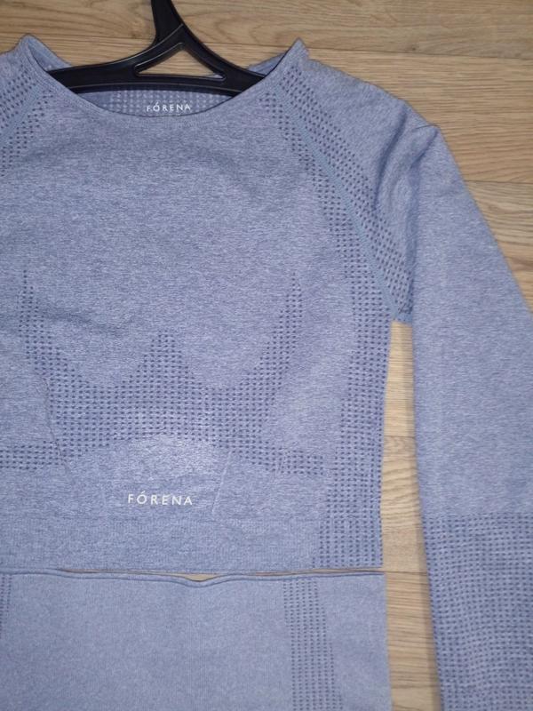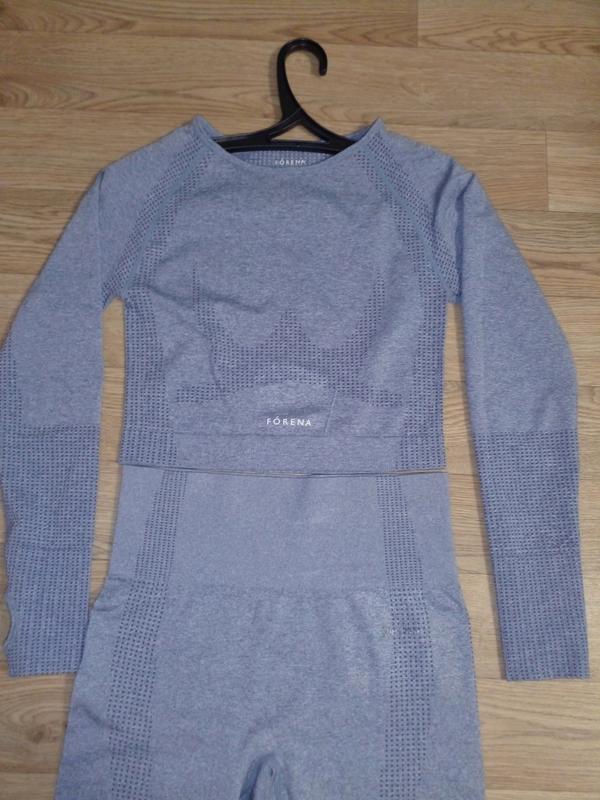 Костюм отлично тянется, обеспечивает полное прилегание к телу и полный комфорт. Фитнес костюм позволяет коже хорошо дышать, при этом не просвечивается.