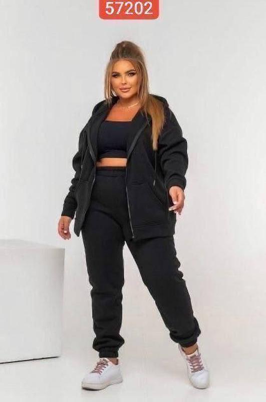 Трьохнитка на флісі. Очень хорошего качества. Кофта крой падающих плеч. Брюки на резинке талия и низ. Не скручивается при стирке. Чудово носиться