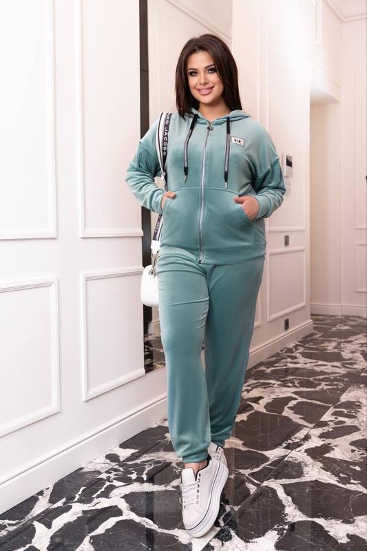 Кофта на молнии, с капюшоном, карманами кенгуру, качественная фурнитура. Брюки с высокой посадкой, удобные боковые карманы.