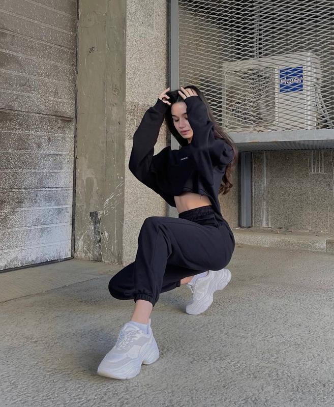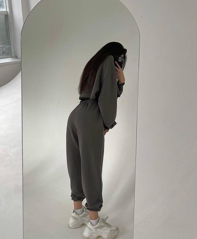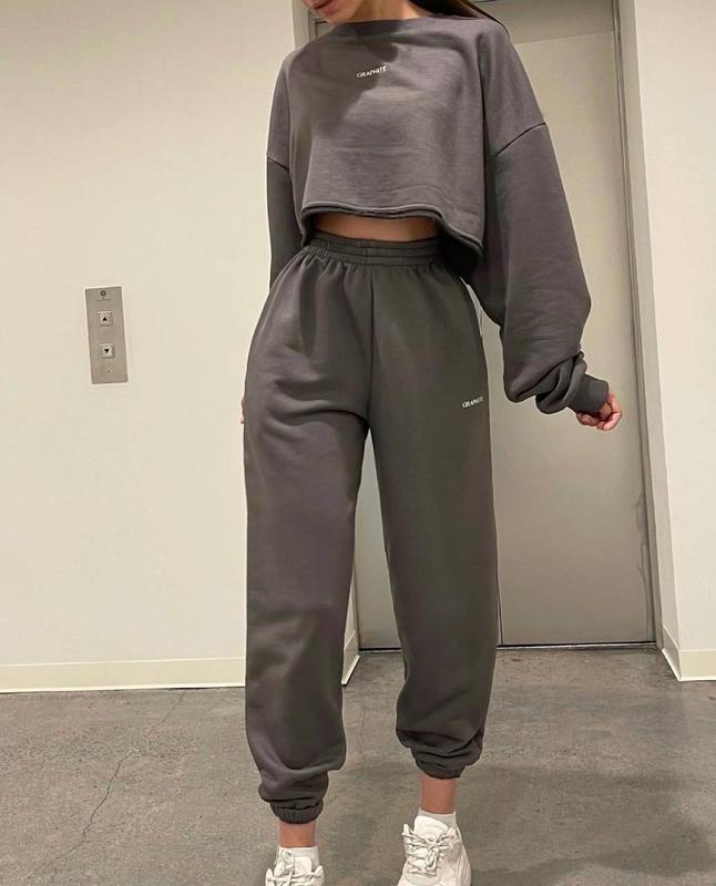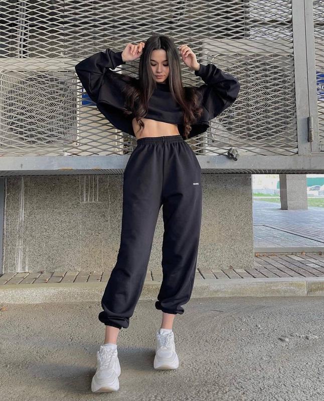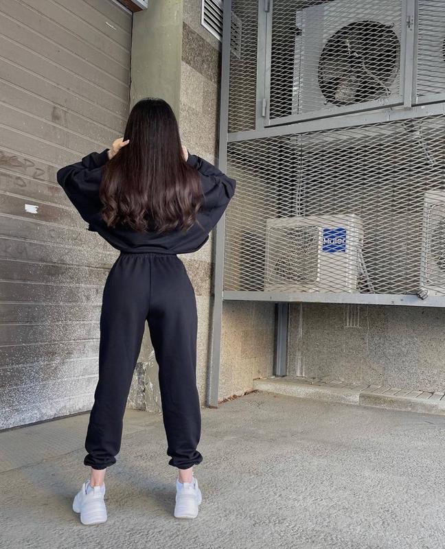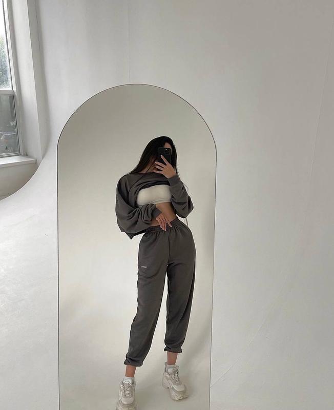 💬Стильный войлочный оверсайз кроя. Объемный свитшот с эффектной отделкой снизу; джоггеры оверсайз с высокой посадкой, на манжетах резиночки.