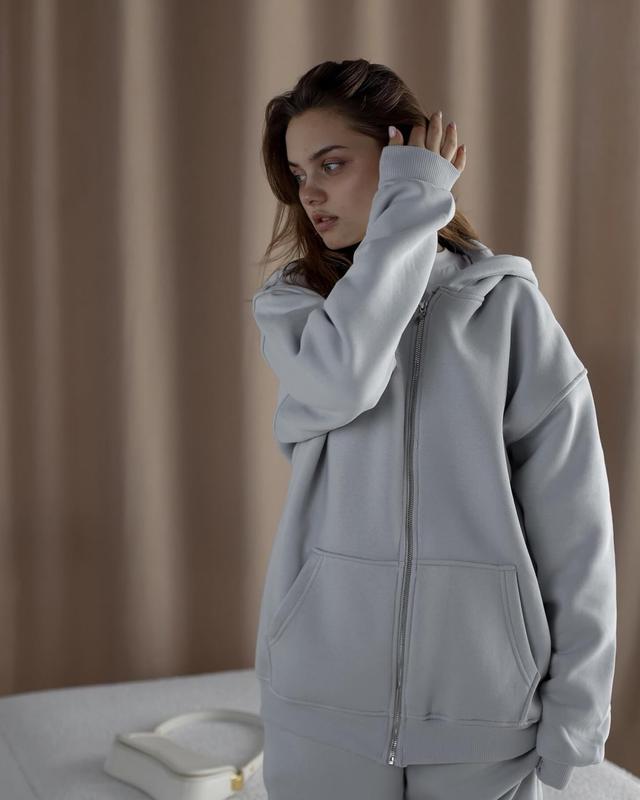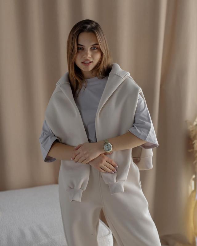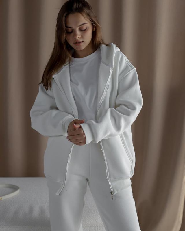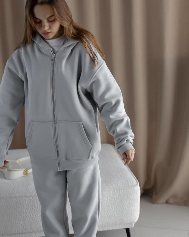 Спортивный костюм на флисе кофта + штаны (графит (голубо-серенький), белый, беж)