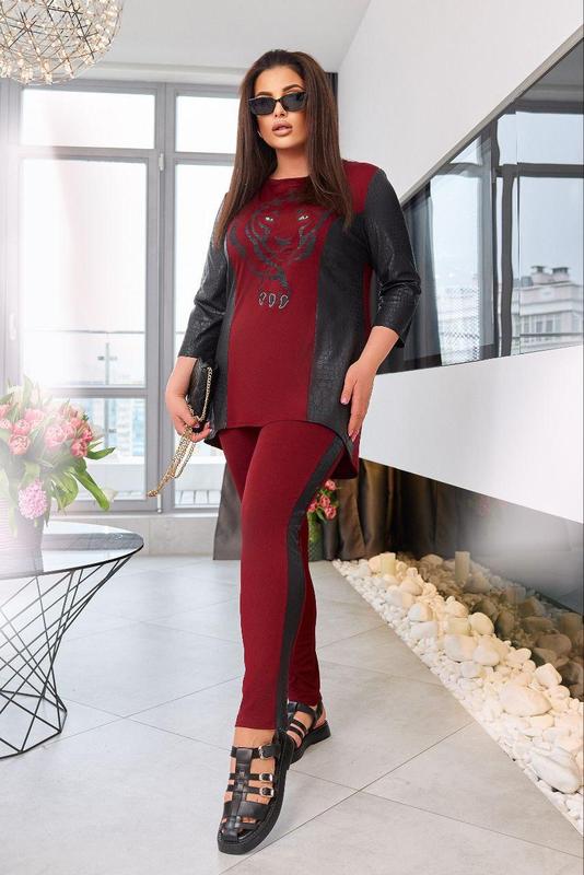 Дайвинг + тонкая кожа с матовым тигровым принтом + аппликация + стразы.