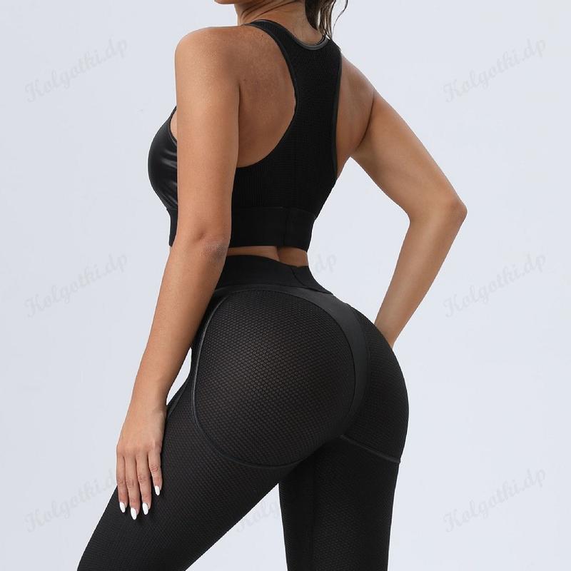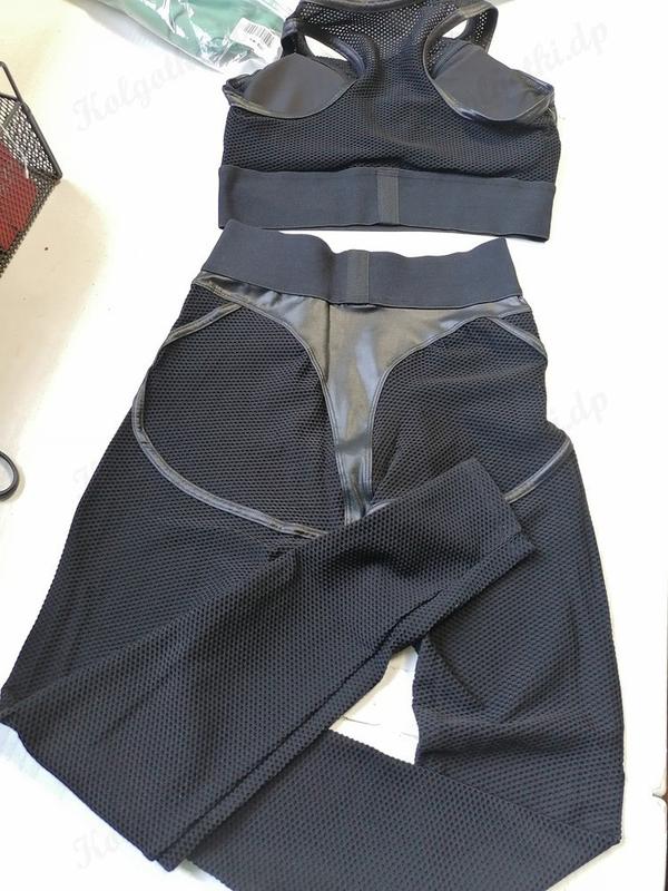 На топе и лосинах есть непрозрачные вставки из блестящей черной ткани,