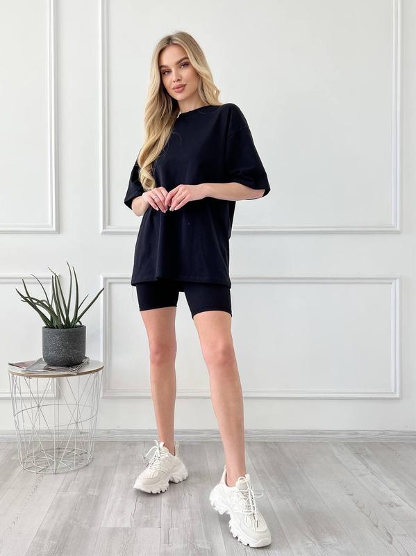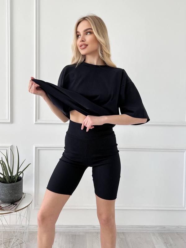 ⠀▫️Розміри: 42-44, 46-48▫️Кольори: білий+чорний, чорний▫️Тканина: футболка-кулір, велосипедки-рубчик⠀Мобель 800