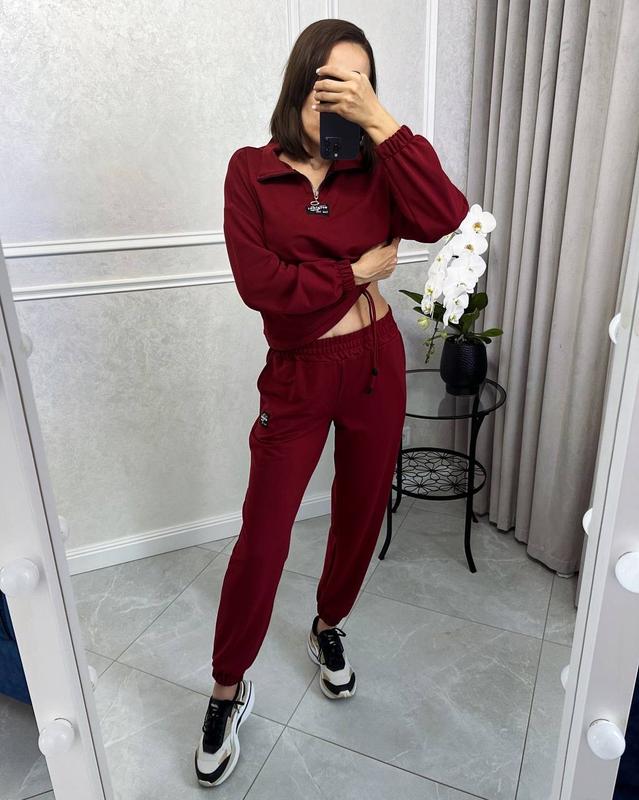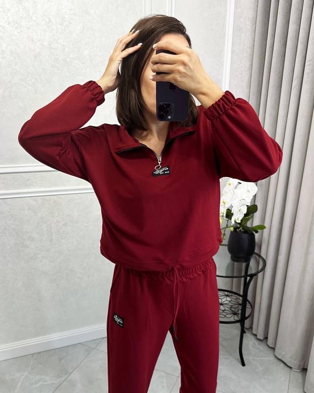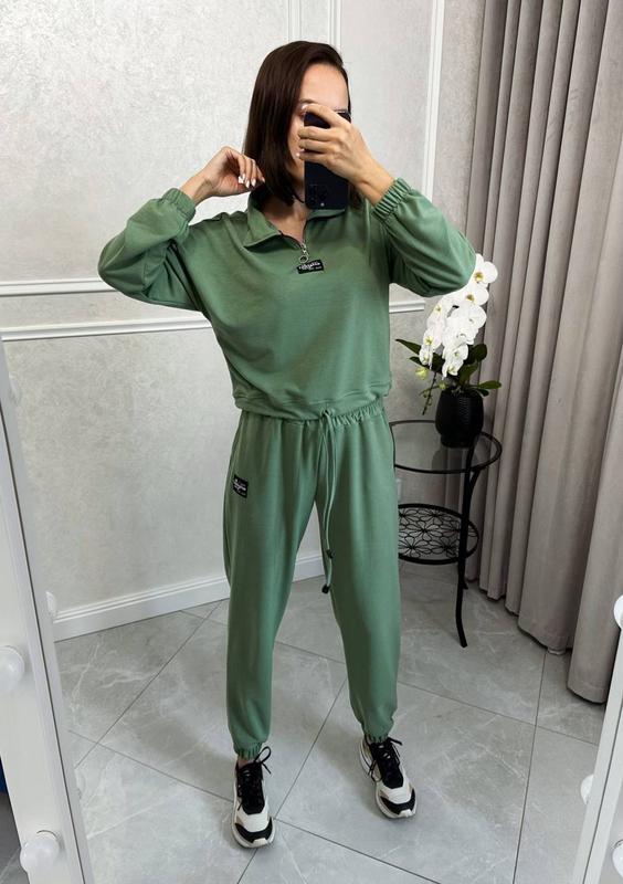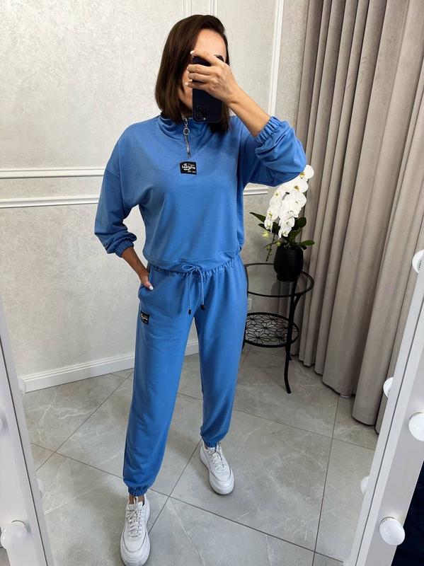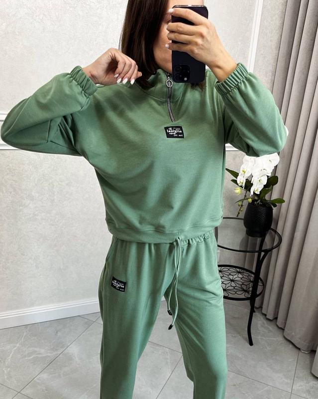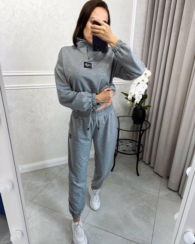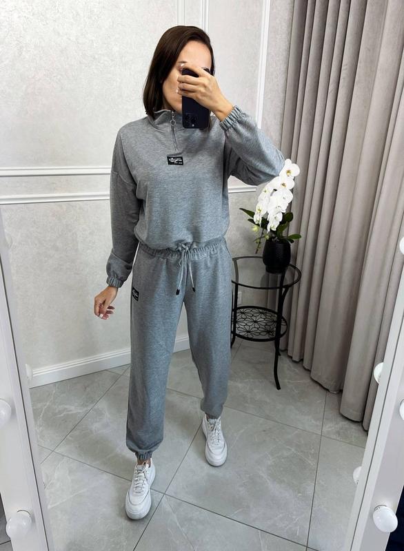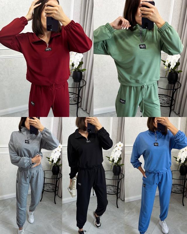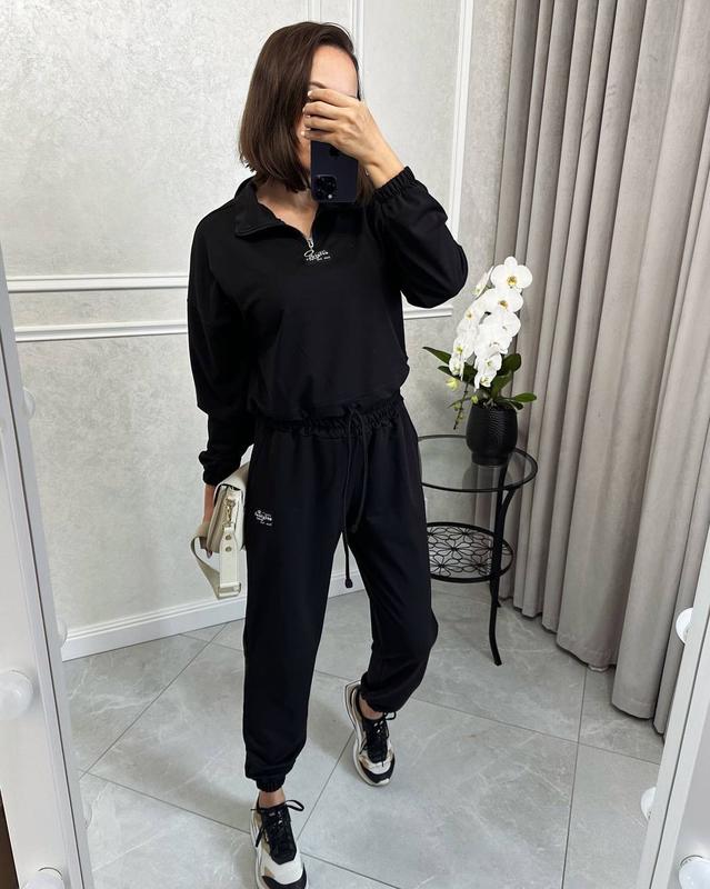 Свитшот скидки затягивается на кулиску, сверху молния и воротник стойка