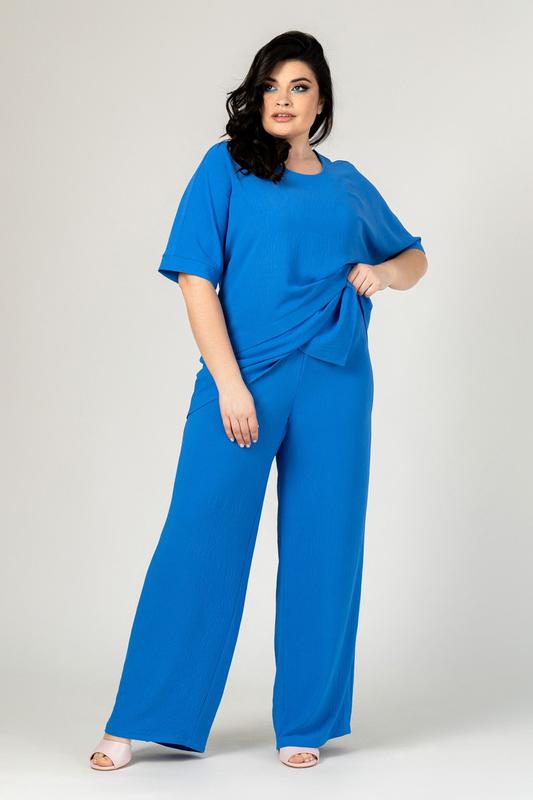 Стильний жіночий костюм: Туніка та штани з американського крепу Опис товару: Подаруйте собі комфорт і стиль з нашим ексклюзивним жіночим костюмом, який складається з елегантної туніки та класичних штанів. Виконаний із високоякісного американського крепу, цей костюм стане ідеальним вибором для будь-якого сезону. Особливості тканини: - Американський креп: Ця тканина має злегка стислену структуру, що надає їй шорсткість та зернистість. Вона не мнеться і не просвічується, що робить костюм практичним і зручним у носінні. - Низька розтяжність: Тканина забезпечує чудову посадку по фігурі без втрати форми. Деталі туніки: - Прямий силует: Туніка створює елегантний та витончений образ, підкреслюючи вашу жіночність. - Асиметричні підрізи: Ці модні елементи додають оригінальності та сучасного вигляду. - Цільнокроєний рукав на манжеті: Забезпечує комфорт та свободу рухів, додаючи вишуканості загальному дизайну. Деталі штанів: - Висока посадка на резинці: Штани з високою посадкою підкреслюють талію, забезпечуючи комфорт і стиль протягом усього дня. - Розтяжність 5-7 см: Еластична резинка дозволяє штанам легко адаптуватися до вашої фігури, забезпечуючи ідеальну посадку. - Прямий крій: Класичний прямий крій штанів робить їх універсальними, дозволяючи комбінувати з різними елементами гардеробу. Цей костюм ідеально підходить для ділових зустрічей, повсякденного носіння або вечірніх виходів. Поєднання високоякісної тканини і сучасного дизайну створює неперевершений образ, який ви будете носити з задоволенням. Купуйте зараз і відчуйте справжню розкіш комфорту та стилю! Характеристики: Сезон літо Категорія костюм Розміри 52-62 Стиль святко-повсякденний Зріст моделі 168 см Довжина рукава р.52 - 44см; р.54 - 45см, р.56 - 46см, р.58,60,62 - 47см; Тип тканини американський креп Склад тканини полиэстер 85% вискоза 15% Колір синій Орієнтовні заміри готового виробу: Туніка: - р.52: ОГ - 114см, ОТ - 114см, ОС - 122см; ширина рукава - 21см; ширина манжети - 18см; - р.54: ОГ - 118см, ОТ - 118см, ОС - 126см; ширина рукава - 22см; ширина манжети - 19см; - р.56: ОГ - 124см, ОТ - 124см, ОС - 130см; ширина рукава - 23см; ширина манжети - 20см; - р.58: ОГ - 128см, ОТ - 128см, ОС - 134см; ширина рукава - 23см; ширина манжети - 21см; - р.60: ОГ - 132см, ОТ - 132см, ОС - 140см; ширина рукава - 24см; ширина манжети - 22см; - р.62: ОГ - 136см, ОТ - 136см, ОС - 144см; ширина рукава - 24см; ширина манжети - 23см; - Довжина туніки: р.52 - 72 см, р.54,56 - 75см; р.58,60,62 - 77см; - Довжина рукава: р.52 - 44см; р.54 - 45см, р.56 - 46см, р.58,60,62 - 47см; Штани: - р.52: ОТ - 78см, ОС - 120см; - р.54: ОТ - 82см, ОС - 122см; - р.56: ОТ - 86см, ОС - 126см; - р.58: ОТ - 92см, ОС - 130см; - р.60: ОТ - 100см, ОС - 134см; - р.62: ОТ - 106см, ОС - 138см; - Довжина штанів: р.52 - 112см; р. 54,56 - 114см; р. 58,60 - 115см; р.62 - 117 см. * Розміри можуть відрізнятися від зазначених +-2 см в залежності від характеристик тканини, технічних особливостей пошиття, ступеня усадки тканини. Замовлення можна оформити через Вайбер Дивіться також: - Костюми великих розмірів - Одяг великих розмірів - Сукні великих розмірів Щоб слідкувати за новинками та отримувати додаткові знижки, приєднуйтесь: ✔️ Телеграм ✔️ ***** ✔️ *********