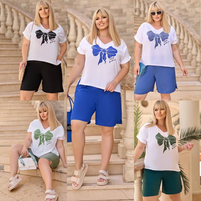 Условия оплаты: 100% предоплата или наложенный платеж с авансом 100 грн Срок отправки: 1-5 рабочих дня Костюм двойка с шортами. Невероятно легкий и комфортный костюм станет любимым. Блузка свободного кроя с принтованным накатом. Шорты свободного кроя, талия на резинке, высокой посадки, с карманами. Удобный комплект для жарких летних дней. Ткань: блузка - американский креп, шорты - лен. Размер: 50-52, 54-56, 58-60, 62-64. Цвета: синий, черный, изумрудный, оливковый, джинс. Измерения: Блуза 50-52 - ог-110, от-108, об-106, длина ок.- 64 см. 54-56- ог-118, от-116, об-114, длина бл.- 64,5 см 58-60- ог- 126, от -124, об-132, дл. ок.- 65 см. 62-64 - ог -134, от- 132, об-138, дл. бл-65,5 см. Шорты свободного кроя с карманами, на резинке: 50-52 - о т-106, об-124, длина шорт - 45 см 54-56-о т-112, об-134, длина шорт- 48 см 58-60-о т-120, об-144, дл.шорт- 51 см. 62-64 - о т-130, об-152, дл. шорт-52 см.