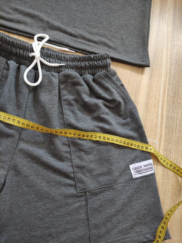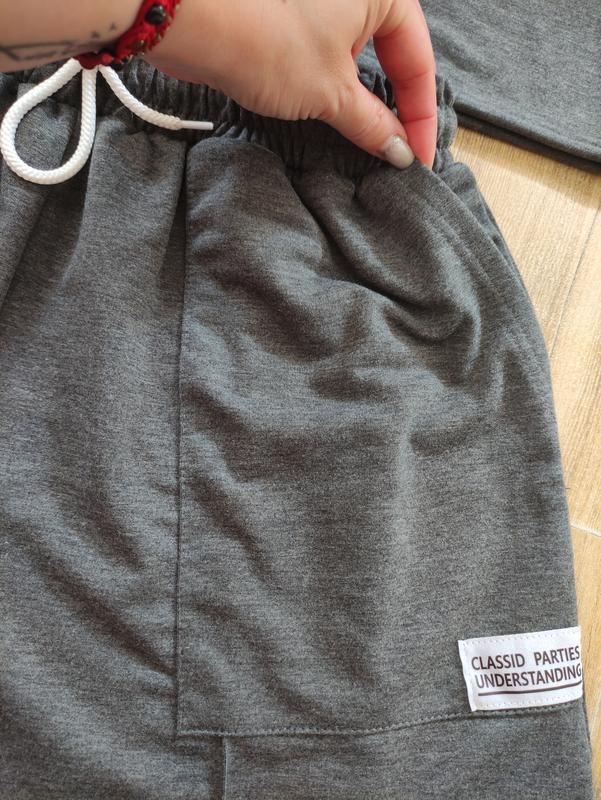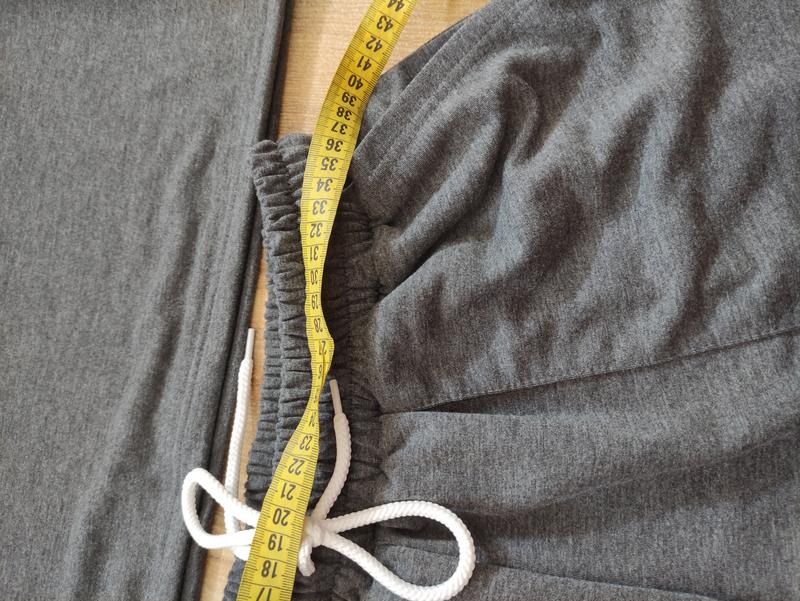 Заміри на фото. Посадка высокая, два кармана. Под руками тянется до 56 см, талия тянется до 60 см, бедра до 75 см. Качественная двухухнитка. Размер 44 но большомірить.наличии только тот, что на фото темно серый.