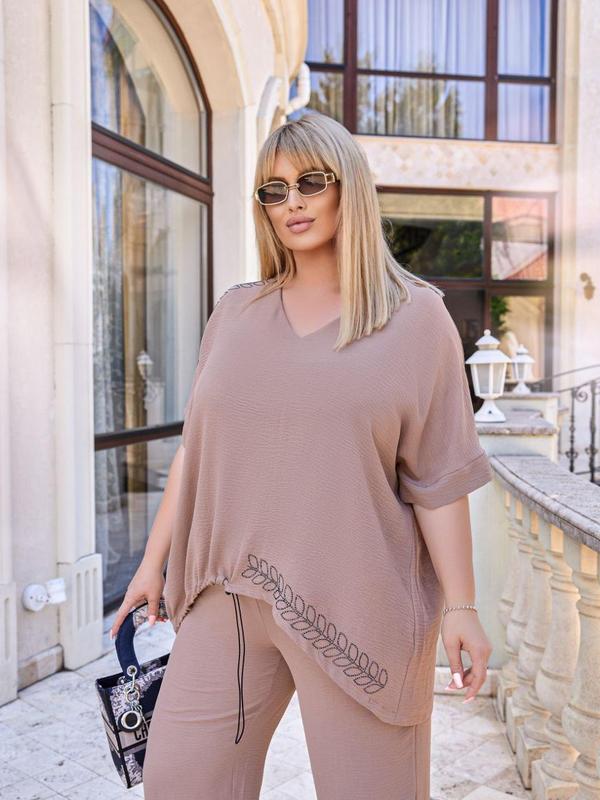 Очень комфортный стильный костюм, с современным кроем, V - образный вырез