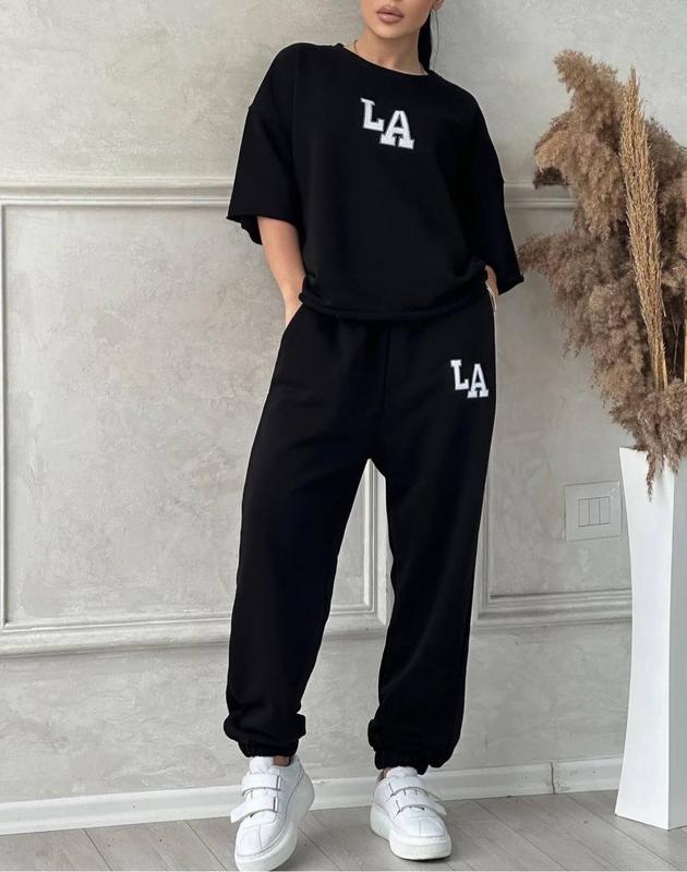 Базовый женский новый летний легкий спортивный оверсайз костюм с футболкой с...