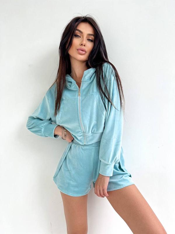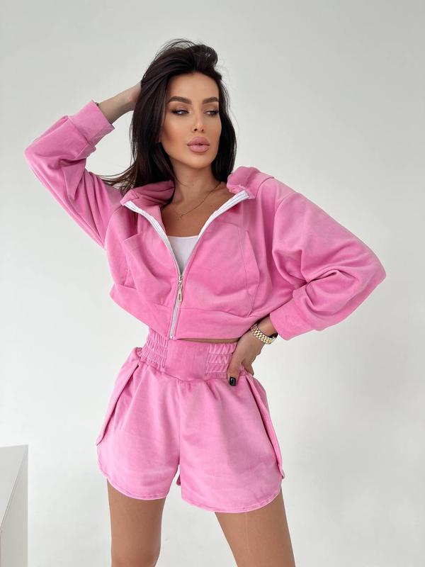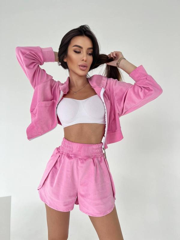 Кофта на молнии с карманом, шорты на высокой посадке, удобный и комфортный ❤
