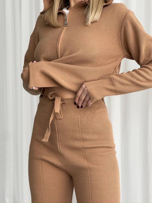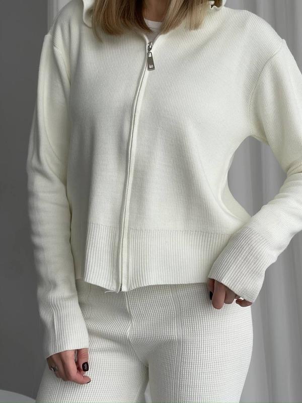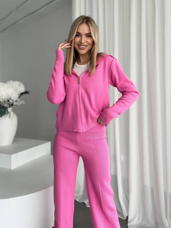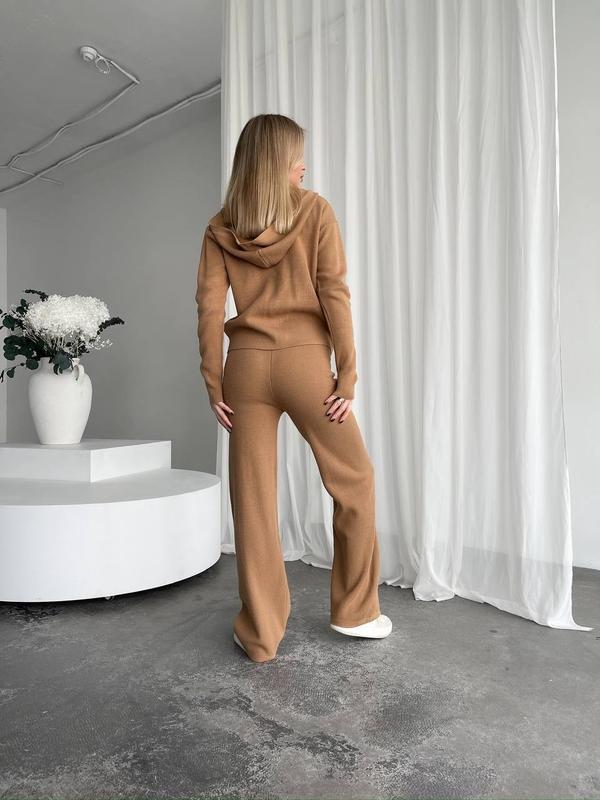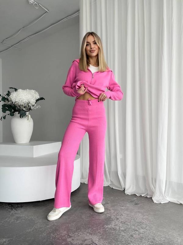 ❤️Оригинальный костюм, Укороченная куртка с капюшоном и застежкой на металлическую молнию. Рукав имеет заниженную линию плеча. Широкие брюки средней посадки.