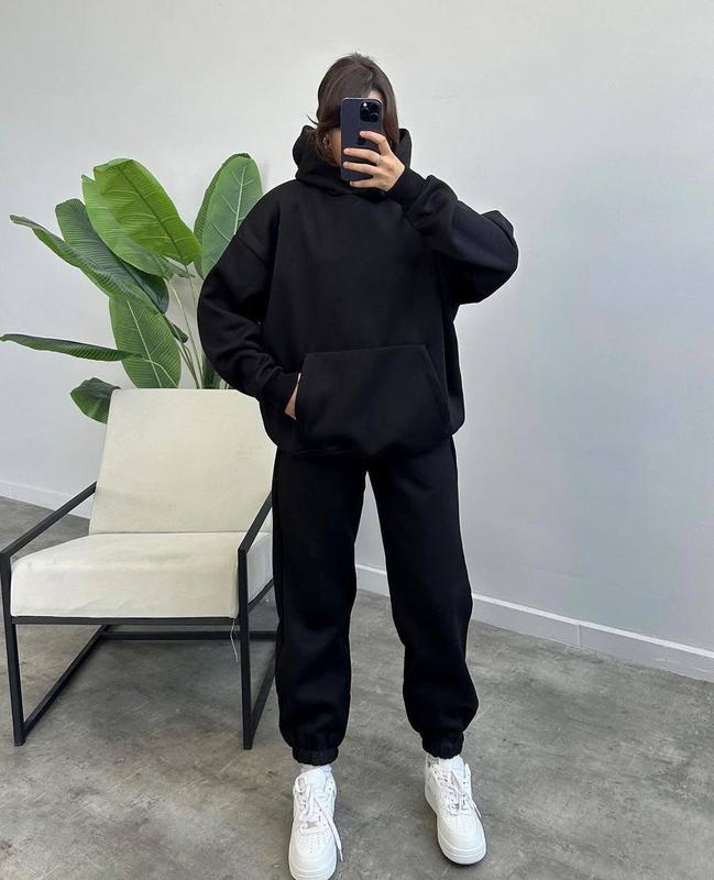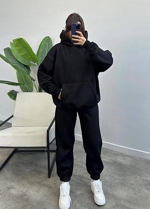Женский спортивный костюм на флисе тёплые брюки джоггеры и на резинках и кофта худи с капю...