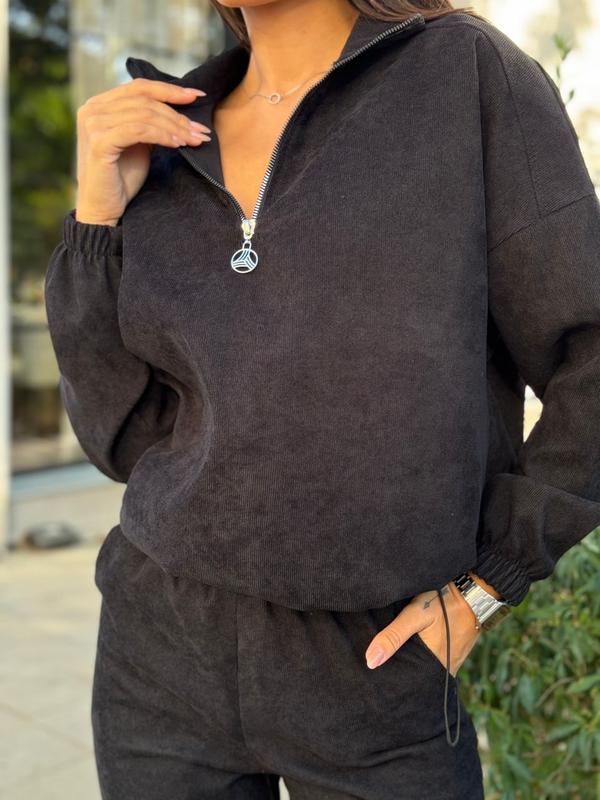 Описание: беж, бутылка, черный, джинс, серый, брюки с высокой посадкой, манжеты брюк на резинке, кофта затягивается по низу резинкой мягко сделать как и шире так и сузить, манжеты на кофте резинка