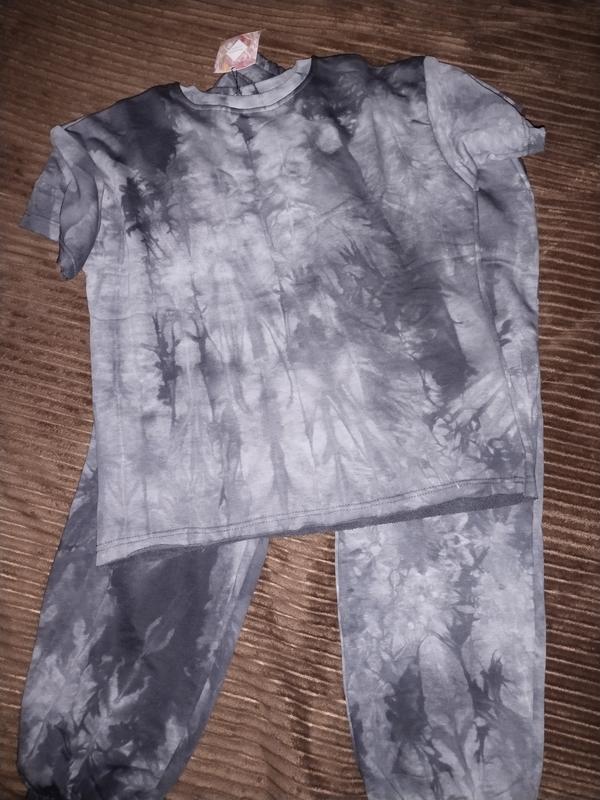стильный трендовый костюм с принтом тай-дай, темно-серого цвета, качество отличноеткань футер, турецкая трехнитьцвет темно-серыйразмер 48/50, 52/54