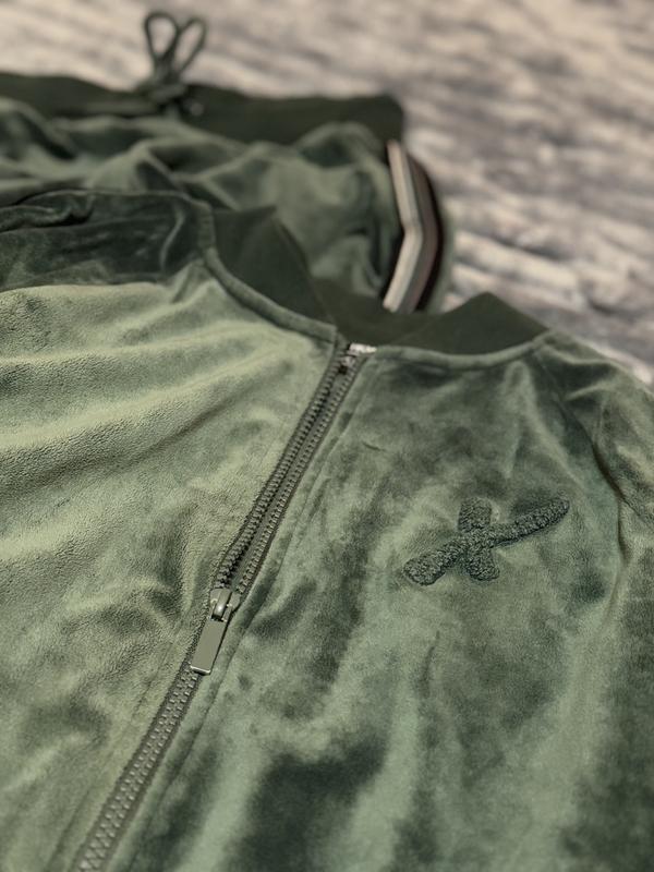Костюм спортивный велюр плюш на меху зеленый черный