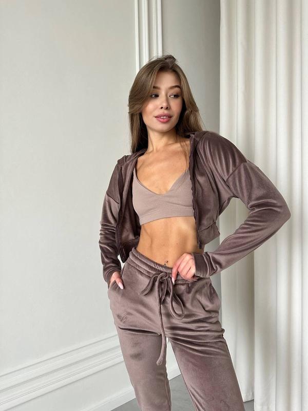 Если не знаете что надеть? Вниманию наш теплый велюровый костюмчик на меху, укороченная кофточка и джоггеры это отличный вариант для ежедневного образа 🥰