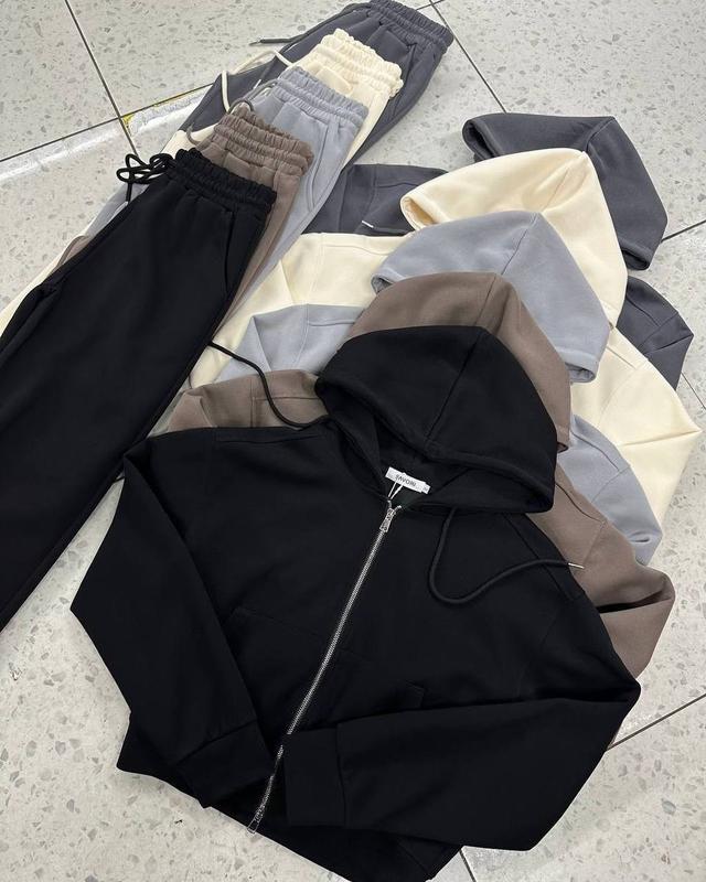 Новинка ✨ Спортивный костюмчик Арт.192 Классическое худи на молнии и джоггеры. Свободного кроя, комфортный, практичный. Материал - двунитка. Размеры - 42-44, 46-48. Цвета - черный, мокко, молоко, серый, графит. Качество и пошив 🔝🔝🔝