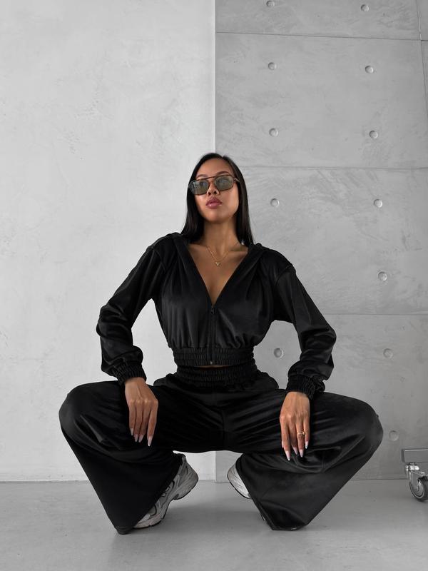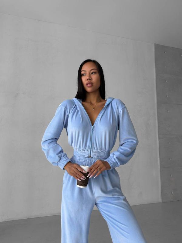Снова все цвета в наличии 👍К вашему вниманию стильный костюм который будет идеально подчеркивать Вашу фигуру.. ТКАНИНА: велюр спорт. КЛИР : голубой, черный, розовый. РАЗМЕР: 42-44. 44-46