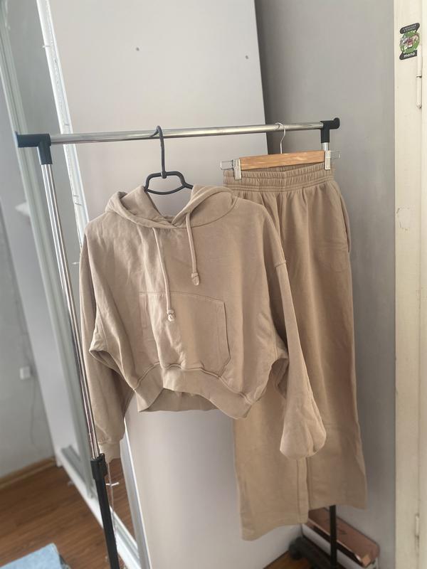 Спортивный костюм на флисе худи укороченное штаны палаццо