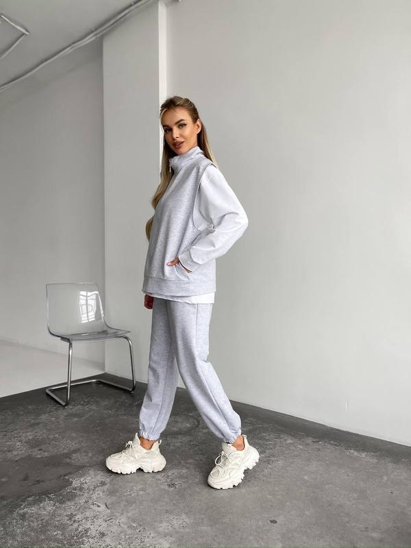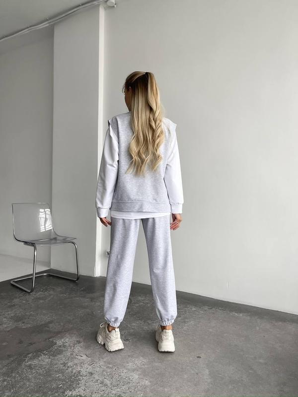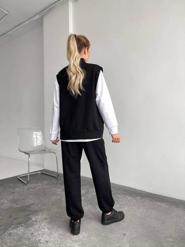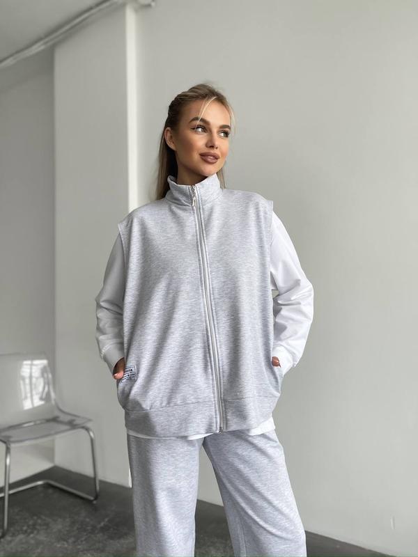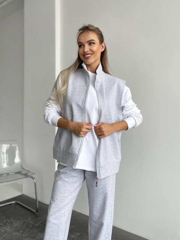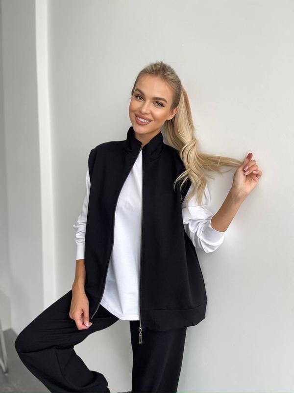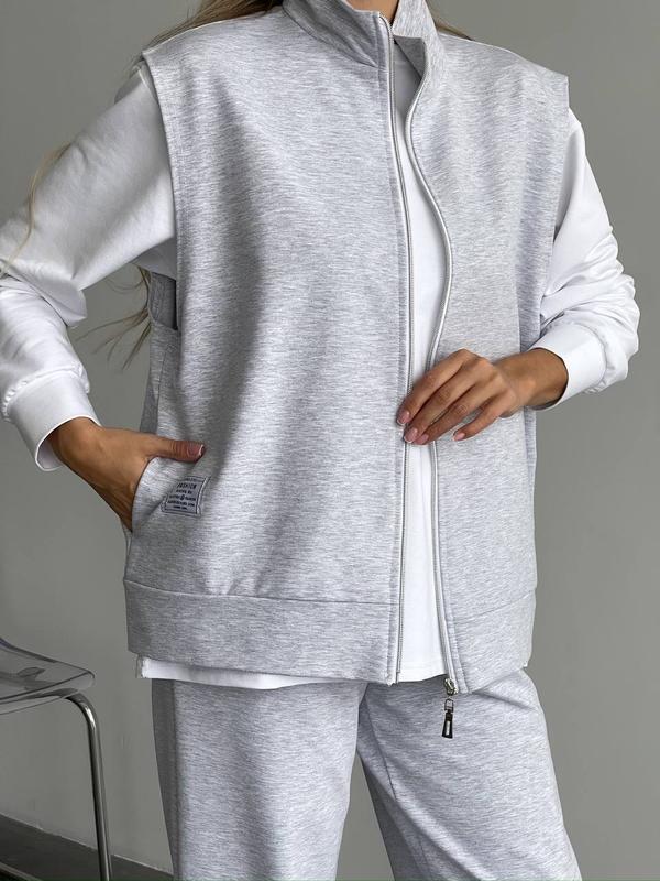 Жилет с карманами и на молнии, кофта и брюки в комплекте также