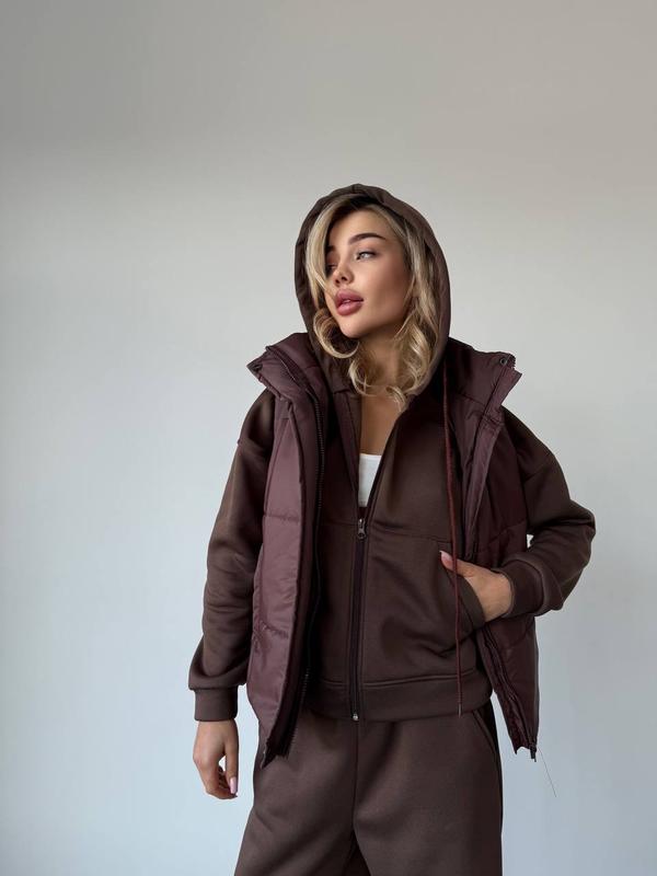 ✅ РЕАЛ ФОТО ▪Модель : 5715 ▪Ткань: тренирит на флисе, жилетка (бельекон 200) ▪Размер: 42-46,48-52 ▪️цвет: шоколад, марсала и серый ЕС