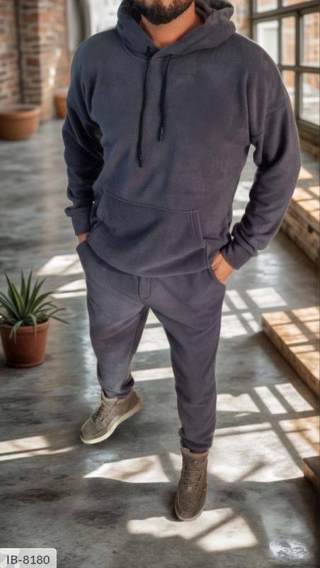 Спортивный костюм флис худи с капюшоном, спереди расположен карман-кенгуру. штаны имеют эл...