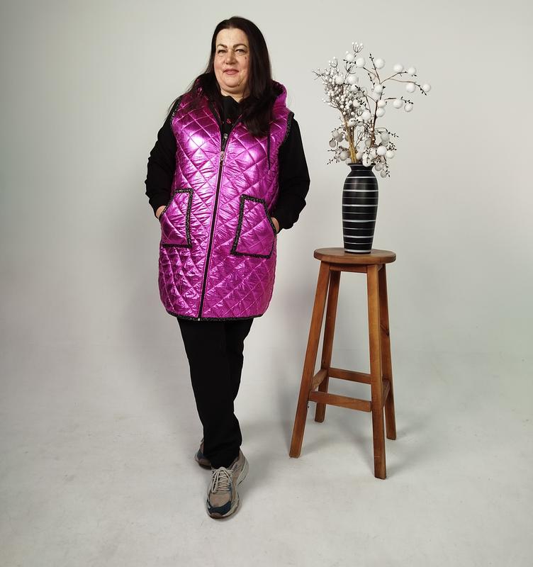 Женский элегантный костюм Тройка с яркой жилеткой - один из самых трендовых в этом сезоне. Удлинённая жилетка это классика спортивной моды, смелый и эффектный вариант. Костюм спортивный черного цвета, материала двунитка. Качество Турция. Размеры в наличии: От L до 3XL По вашим индивидуальным замерам, подберем Вам идеальный размер. L ( объём в груди 104 см, длина кофты - 70 см, объём в бёдрах - 90 см. Длина брюк 102 см, жилетка длина - 86 см.) 3XL ( объём в груди - 120 см, длина кофты - 73 см, объём в бёдрах - 106 см. Длина брюк - 107 см. Жилетка длина 90 см)