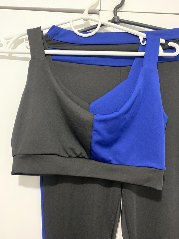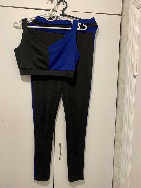 Черно-синий костюм для фитнеса и спорта